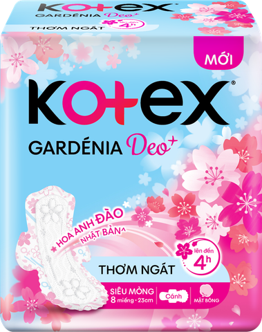 Kotex Gardenia Deo+ Hoa Anh Đào Nhật Bản siêu mỏng cánh 8 miếng - Siêu khử mùi cho bạn gái tự tin, thoải máiTrong suốt thời kì kinh nguyệt, bạn gái sẽ luôn gặp phải các vấn đề khó chịu, tràn băng và đặc biệt là mùi hôi làm phái nữ chúng ta trở nên tự ti làm điều mình thích.