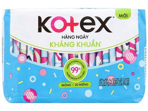 - Băng vệ sinh Kotex hằng ngày 20 miếng có bề mặt bông siêu mềm mại, êm ái, không gây kích ứng cho da.