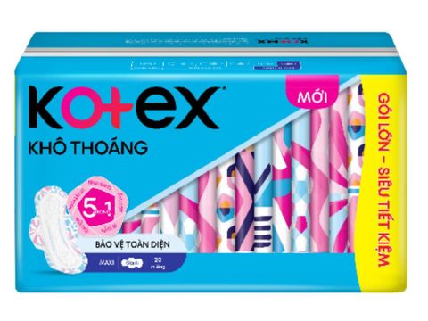 Băng vệ sinh Kotex là thương hiệu uy tín với sản phẩm băng vệ sinh giúp chăm sóc vệ sinh cá nhân cho chị em phụ nữ. Băng vệ sinh Kotex khô thoáng 5 trong 1 20 miếng có bề mặt bông siêu mềm mại, êm ái, giúp kiểm soát mùi hiệu quả, chống tràn hiệu quả