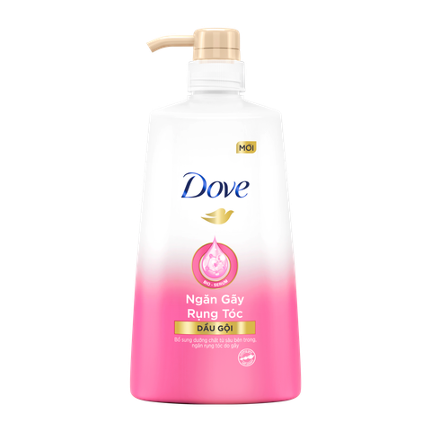 Dầu Gội Dove Ngăn Gãy Rụng Tóc 640gr với Bio-Serum kết tinh từ Dầu Hạt Hướng Dương và Chiết Xuất Lá Trà Xanh, thấm đều và nuôi dưỡng từng sợi tóc từ bên trong, giúp tóc mềm mượt dễ chải, giảm xơ rối ngay từ khi tóc ướt, ngăn gãy rụng vượt trội* (*so với dầu gội không chứa chất xả).