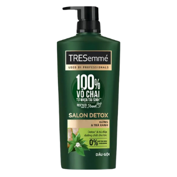 - Dầu Gội Tresemmé Salon Detox Gừng & Trà Xanh Giúp Tóc Chắc Khoẻ 640g với công thức chứa thành phần thiên nhiên gồm gừng và trà xanh, giúp khôi phục lại vẻ đẹp chắc khoẻ tự nhiên cho mái tóc cùng cảm giác thư thái khi gội, mùi hương sang trọng cả ngày dài.