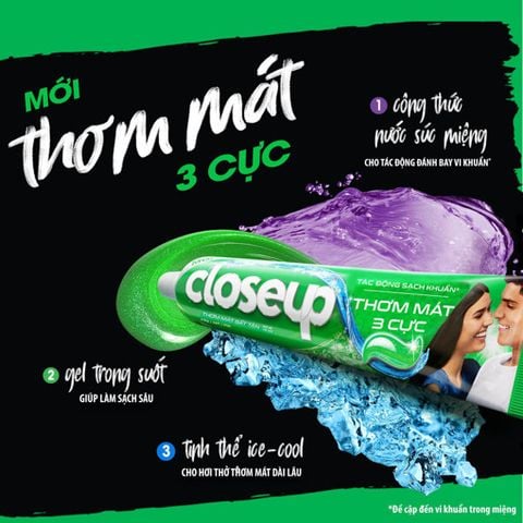 Closeup là thương hiệu chuyên cung cấp các sảnp phẩm chăm sóc răng miệng được nhiều người yêu thích thuộc công ty đa quốc gia Unilever. Thương hiệu được thành lập vào năm 1967 với chiết xuất từ nước súc miệng và hạt làm trắng siêu nhỏ giúp đánh bay các mảng bám cứng đầu mang lại hàm răng luôn trắng sáng và tràn đầy sức sống.