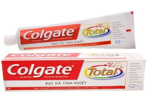 Colgate là nhãn hiệu của Mỹ chuyên về các sản phẩm vệ sinh răng miệng bao gồm sản phẩm kem đánh răng. Kem đánh răng Colgate Total bạc hà tinh khiết 190g chăm sóc nướu, giảm ê buốt, giảm mảng bám, ngừa sâu răng, hơi thở thơm mát, ngăn ngừa vi khuẩn