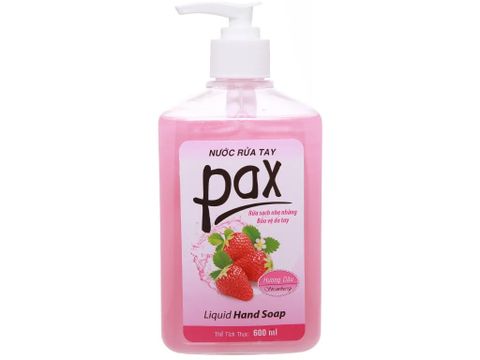 thương hiệu Pax bảo vệ bàn tay, rửa sạch nhẹ nhàng, khử mùi, giữ ẩm và bảo dưỡng da tay. Nước rửa tay Pax hương dâu 600ml thích hợp sử dụng hằng ngày trước bữa ăn, sau khi làm việc trong gia đình, nhà hàng, công sở, bệnh viện...