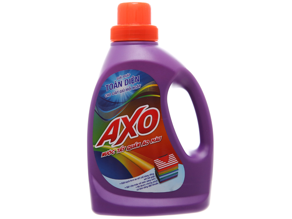 Xử lý trước: Dùng sản phẩm nước tẩy bảo vệ màu AXO trực tiếp lên các vết bẩn ngay sau khi bị vấy bẩn. Vò nhẹ và để yên trong vòng 5 phút, sau đó giặt lại với nước.