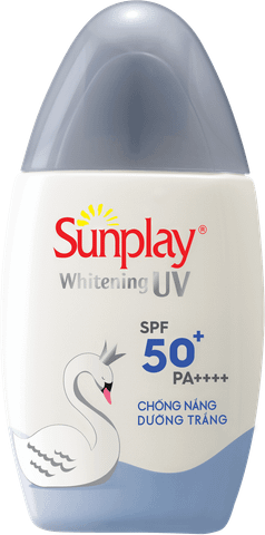 Kem chống nắng dạng sữa dưỡng trắng da Sunplay Whitening UV SPF50+/PA++++ là kem chống nắng thuộc thương hiệu Sunplay có tác dụng bảo vệ làn da hiệu quả khi hoạt động ngoài trời với ưu điểm có khả năng kháng nước tốt. Công thức bổ sung chiết xuất từ quả mâm xôi giúp dưỡng trắng, ngăn đen sạm vượt trội, an toàn và lành tính với da vì không chứa thành phần cồn. Màng chắn UV Shield thế hệ mới với kết cấu độc đáo phủ đều trên da, chống nắng hiệu quả, đồng thời mang lại cảm giác thoáng mịn, không gây khô da.