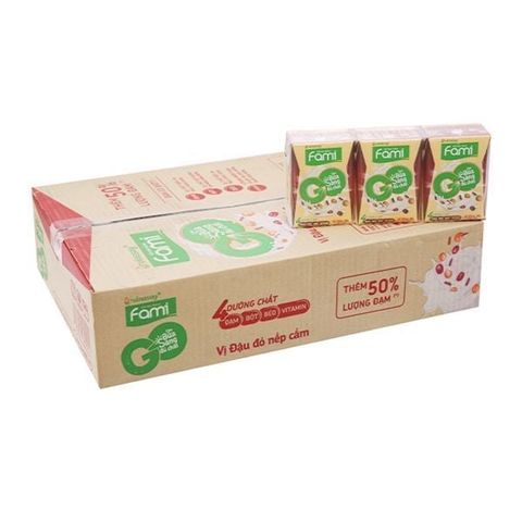 Sản phẩm sữa đậu nành Fami đậu đỏ nếp cẩm 200ml kết hợp với nếp cẩm, đậu đỏ và không hề chứa chất biến đổi gen, đảm bảo mang đến cho bạn một hương vị thật khác biệt. thơm ngon, tiện dùng, cho bữa sáng của bạn đủ đầy dưỡng chất.