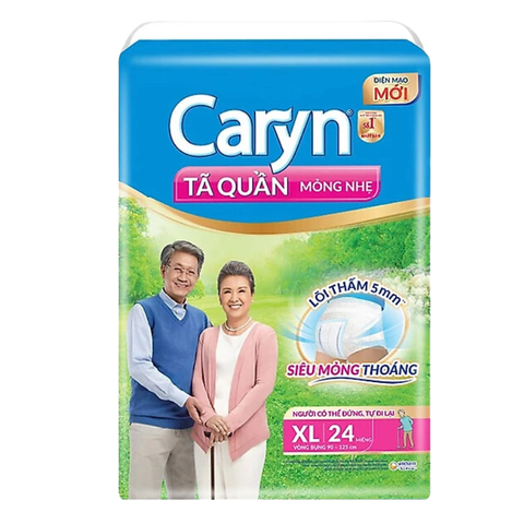 - Tã quần mỏng nhẹ Caryn cải tiến mới có đầy đủ tính năng của một miếng tã quần lý tưởng: Mỏng nhẹ - Thoáng khí - Dễ mặc – Chống tràn tối ưu