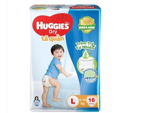 Tã quần Huggies Dry size L bịch 16 miếng cho bé 9 - 14kg.
