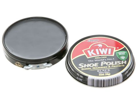 Xi sáp đánh giày Kiwi màu đen 45ml có thể sử dụng để đánh bóng cho tất cả các loại giày da màu đen